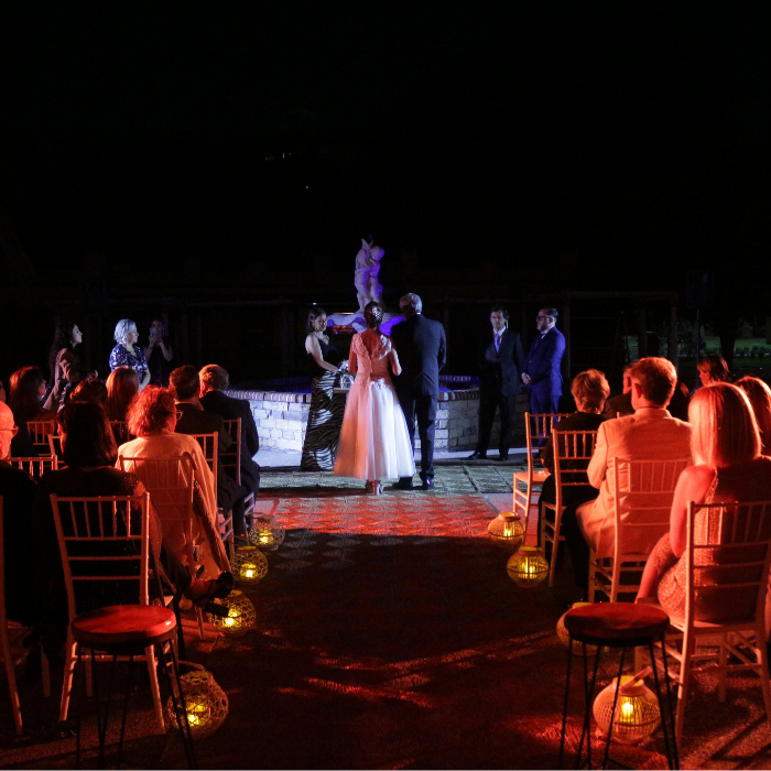 Nordeco diseña la ambientación, cuidando cada detalle: flores naturales, velas, iluminación decorativa y mobiliario.